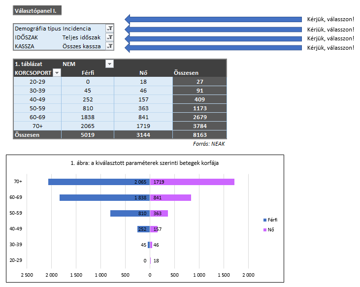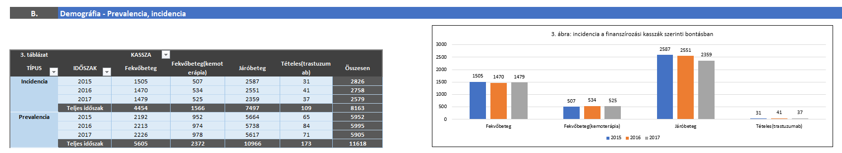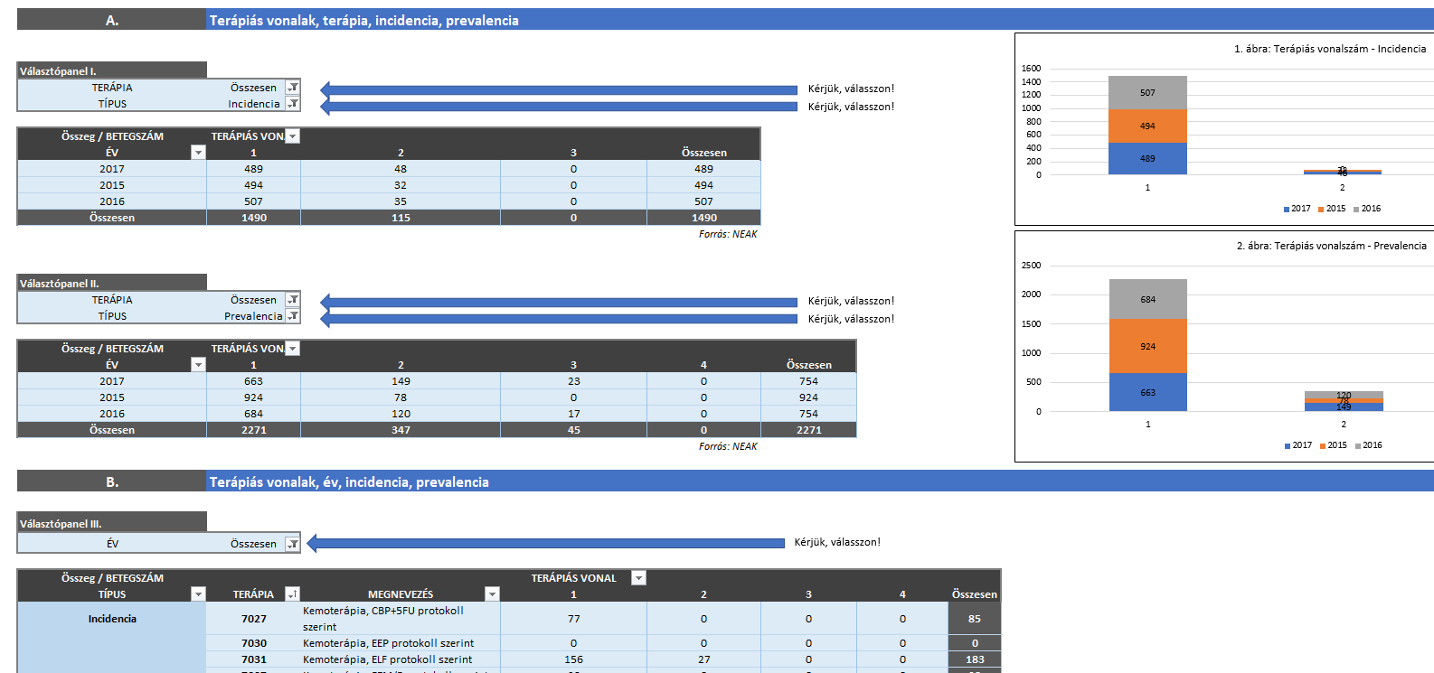 - Prevalens/incidens betegszámok terápiás területenként, időszak és terület bontás szerint