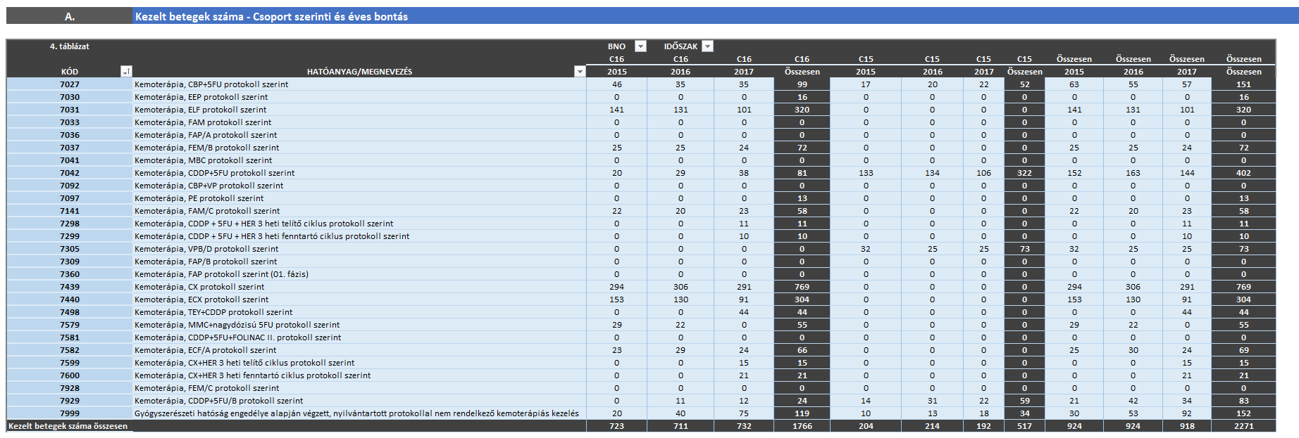 Adatbázisunk egyedülálló módon magában foglalja az onkológiai betegek teljes finanszírozását: